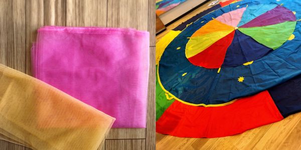 - パラバルーン、布、スカーフなど多彩な教具