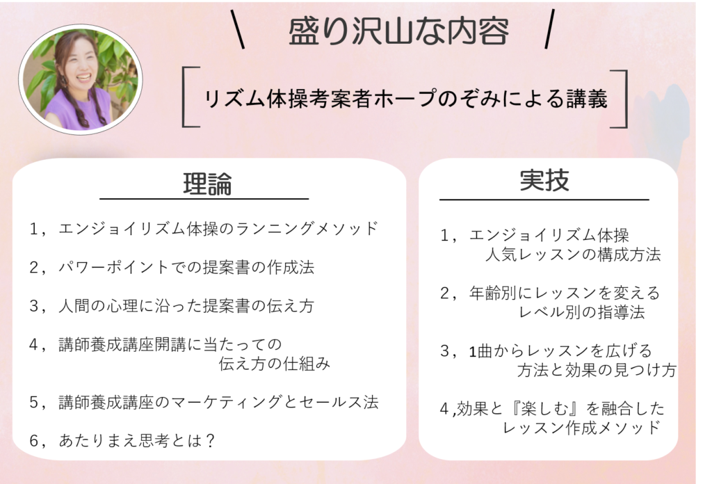 • リズム体操のレッスンの裏を学ぶ事で、より理解力が深まる